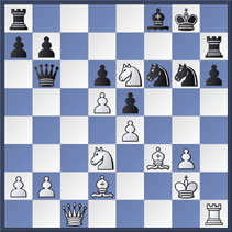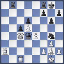 Die Diagrammstellung stand im Simultanspiel zwischen Martin und mir auf dem Brett. Schwarz am Zug hat zwei kleine Kombinationen zur Verfügung, von denen die eine zu entscheidendem Vorteil führt, während sich die andere als Fata Morgana entpuppt. Ich übersah am Brett ein wesentliches Detail und wählte den falschen Weg. Martin hatte intuitiv Angst vor dem richtigen Zug gehabt.