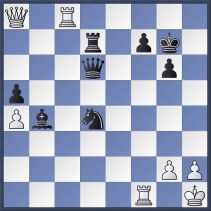 In dieser Partie hatte es strategisch düster für Weiß ausgesehen, also hatte er einen kraftvollen Angriff vom Zaun gebrochen und ich hatte ihm in Zeitnot etwas leichtsinnig erlaubt, auf der 8. Reihe einzudringen. Nun war ich mit Schwarz am Zug und musste mich mit der Frage auseinander setzen, ob Weiß denn wirklich etwas droht. Mein absoluter Kandidatenzug war 41...Dd5, denn er deckt den schwachen Punkt f7, fesselt den weißen g-Bauern und bietet Damentausch an (jedes Endspiel sollte für Schwarz klar gewonnen sein) - also ein sehr wünschenswerter Zug, aber ist er auch taktisch einwandfrei?