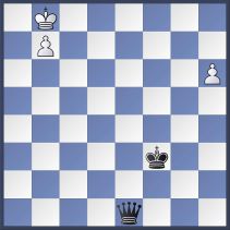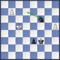 In der Partie folgte 1...Sd7+ 2.Kc6? Sb8+ 3.Kc7 e2 4.Kxb8 e1D 5.h6 (zweites Diagramm) und nun kann Schwarz gewinnen.