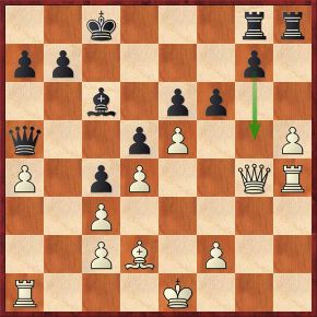 In der Diagrammstellung spielte Schwarz g7-g5. Weiß nahm den Bauern en passant und opferte nach 20...Th8xh4 mit 21.Dg4xe6+ Kc8-c7 22. De6xg8 den Turm auf a1.