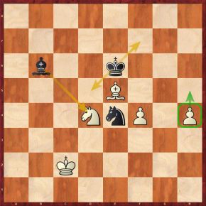 Weiß besitzt zwei Mehrbauern und der h-Bauer droht durchzulaufen. Plausible Züge zur Abwehr des Schachgebots sind